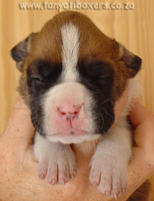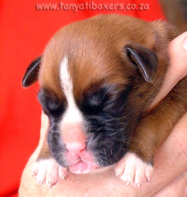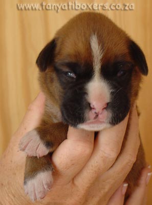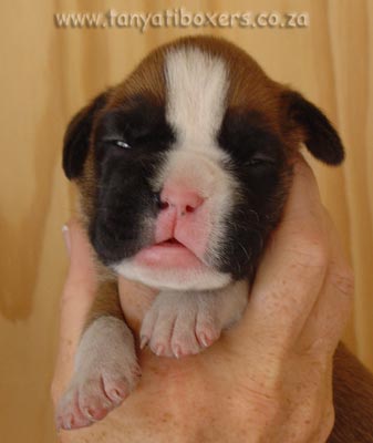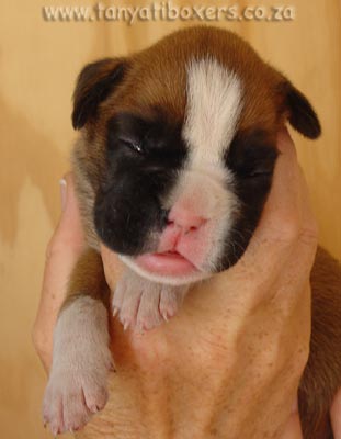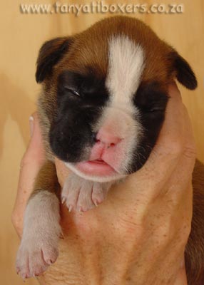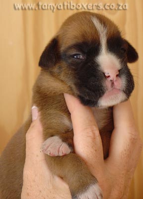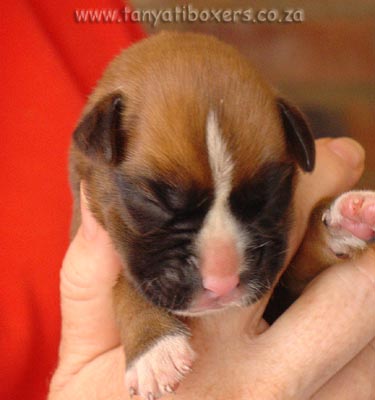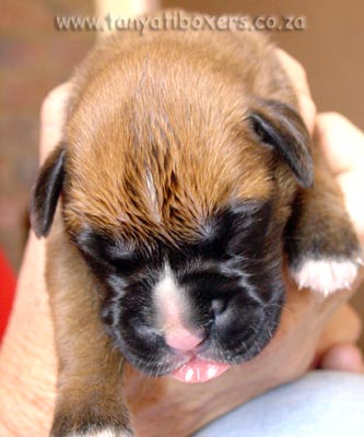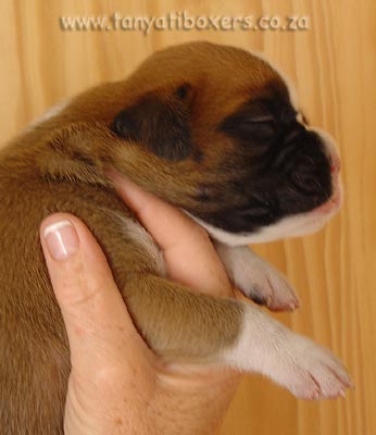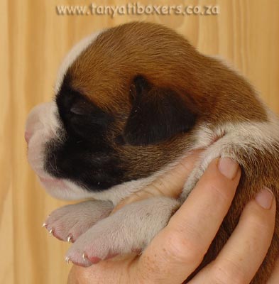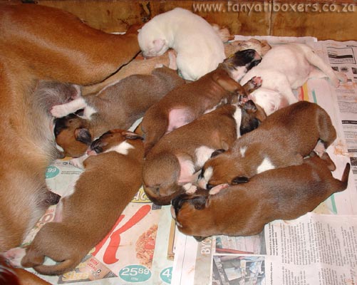 Bella had 9 puppies in total, but sadly one little flashy fawn